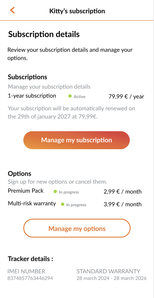 After registering your tracker in the Weenect app, you will automatically be asked to choose a subscription:
